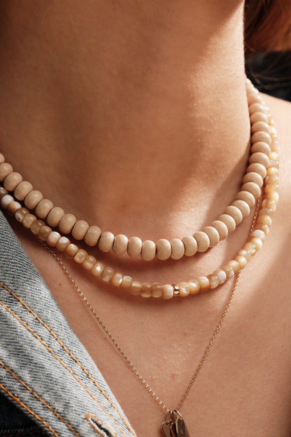 The Nomad Collection is inspired by the organic beauty of nature, featuring Trochus Shell, Jasper, Carnelian, and White Jade. Drawing from earthy, desert, and coastal landscapes, each piece showcases unique textures and tones. Finished with 14ct gold accent beads and adjustable gold filled clasps, these necklaces offer timeless, versatile style perfect for layering or everyday wear.