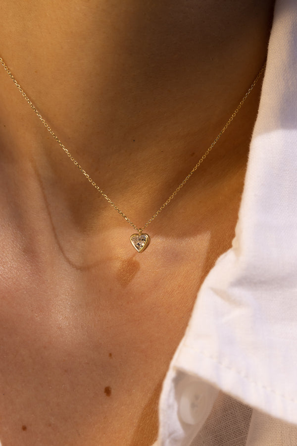 PETITE BEZEL DIAMOND HEART NECKLACE