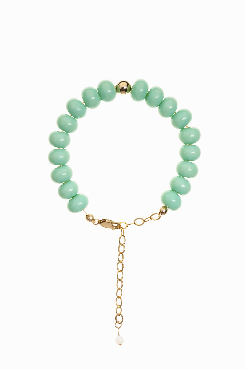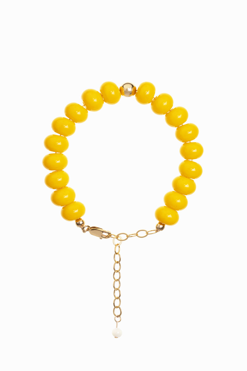 Meet our new Cherry Bead Bracelet. This statement bracelet features a strand of delicious 10mm glass beads and has a 7mm gold filled gold bead in the centre.