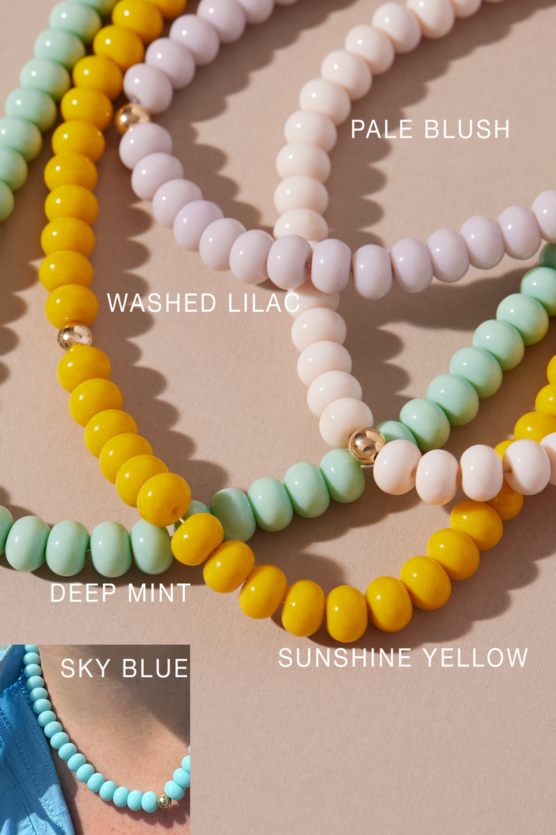 Meet our new Cherry Bead Necklace. This Summer statement necklace features a strand of delicious 10mm glass beads and has a 7mm gold filled gold bead in the centre.