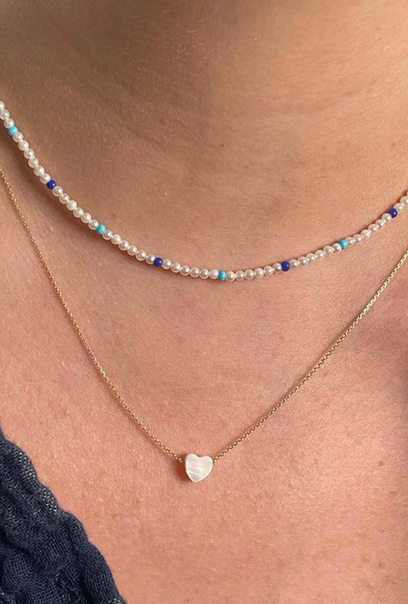 Meet our Limited Edition Mother Of Pearl Sweet Heart Necklace. This simple beauty is handmade in our London workshop and it features a Mother of Pearl Heart centrepiece treaded on to a 9ct solid gold chain. The star pendant is 8mm wide and the chain can be worn at 16, 17 or 18 inches.