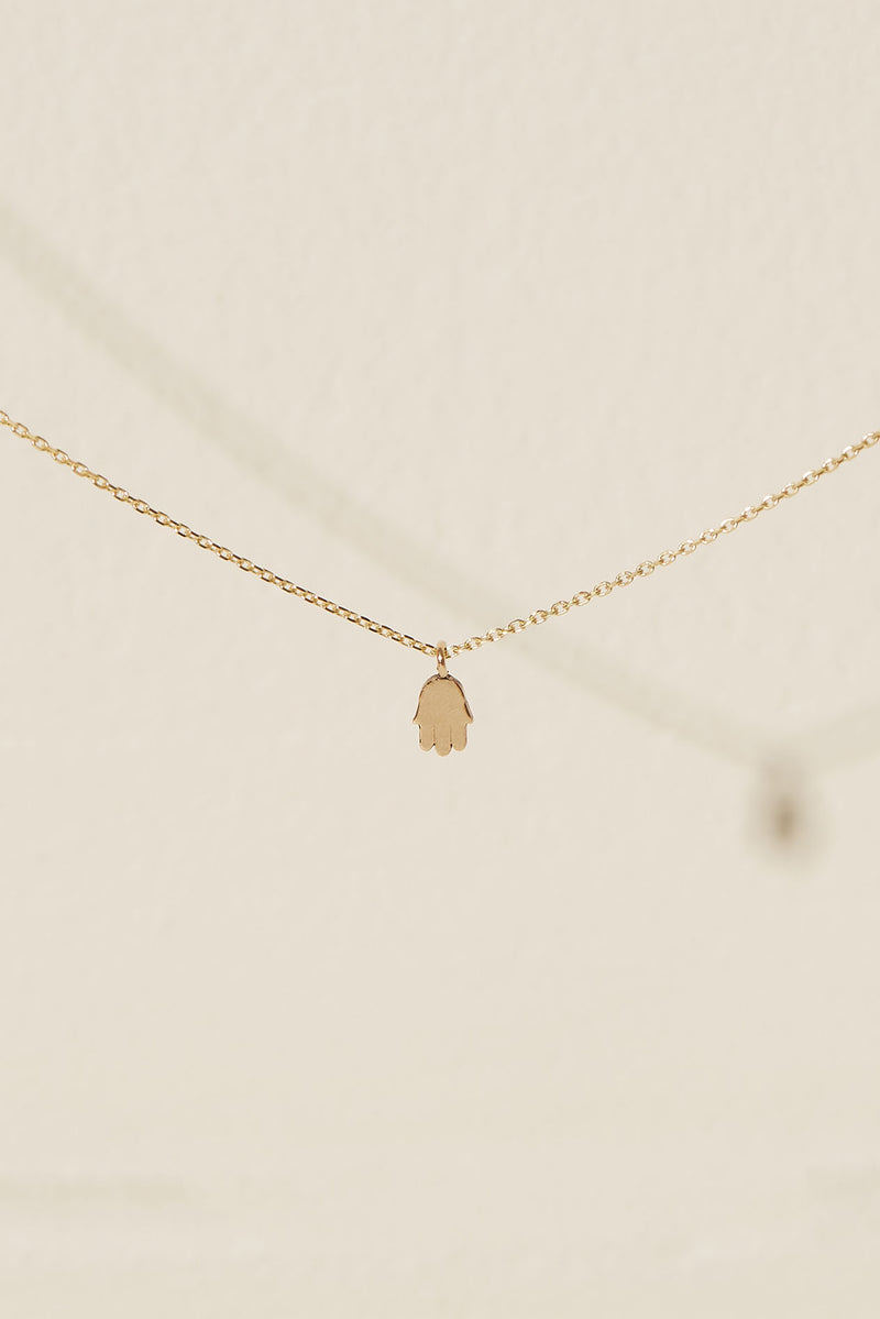 Meet our Petite Hamsa Necklace; this beautiful piece is crafted in full in our London atelier from solid 9ct Gold . This talisman is made to order so can made to the perfect length and you can choose from solid Yellow, White or Rose Gold. The Hamsa charm is 4mm high.
