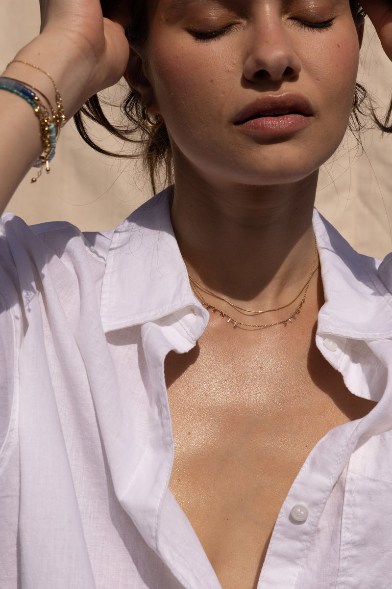 Part of our minimalist Skin Collection this timeless necklace is made from 9ct solid gold, and is a jewellery staple.