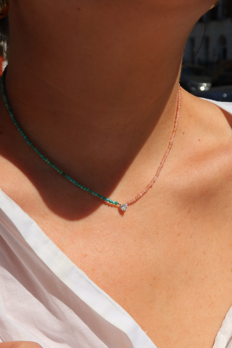 Crafted from sparkling diamonds, semi precious stones and set in solid gold, this dainty and delicate piece radiates a sophisticated elegance with a hint of fun.