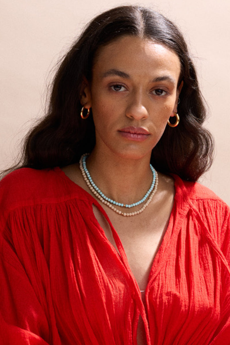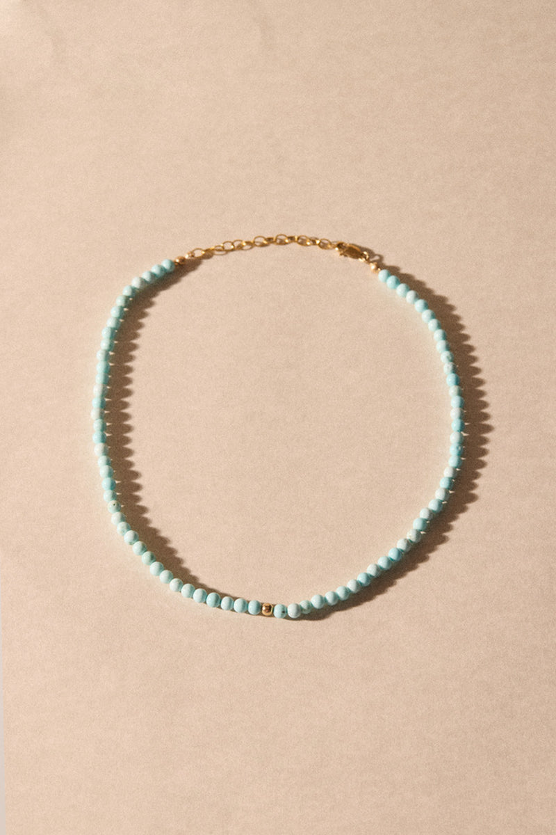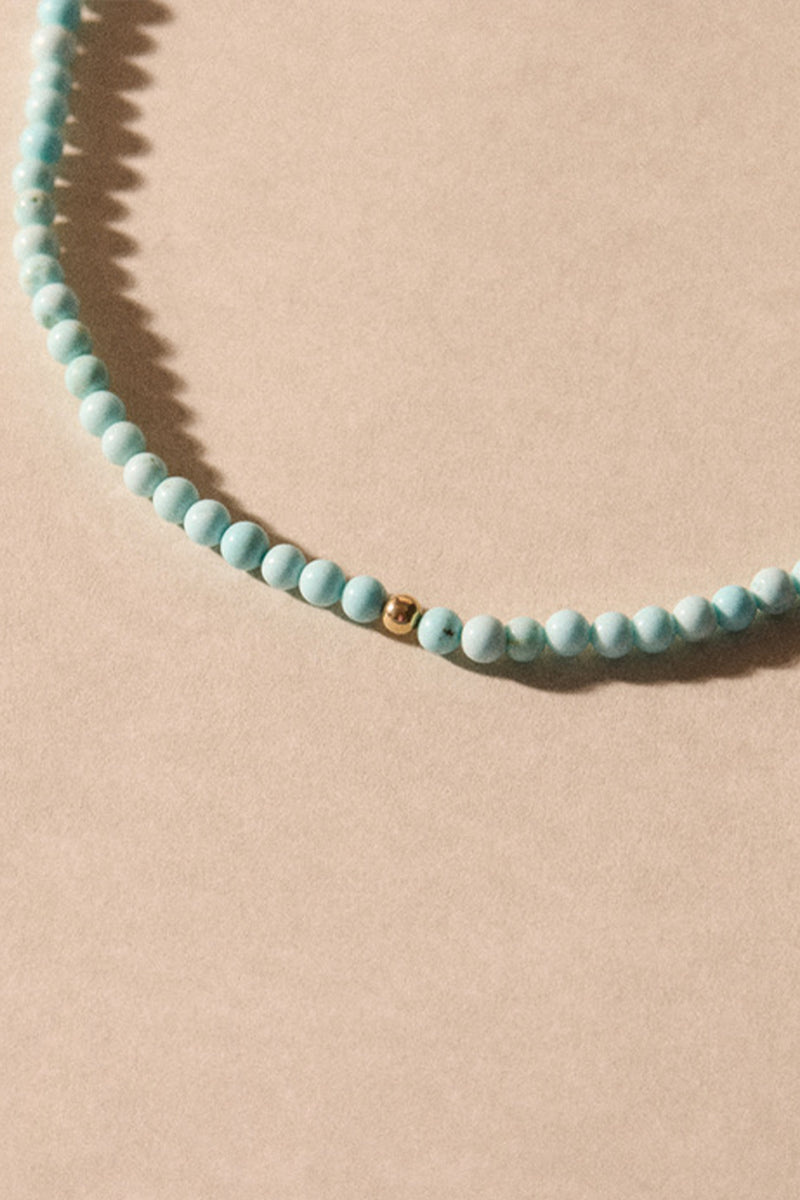 The Formentera Mini Turquoise Beads, our collection's charming sister bead offer a daintier version to our Formentera Turquoise Beads with a gold accent bead.