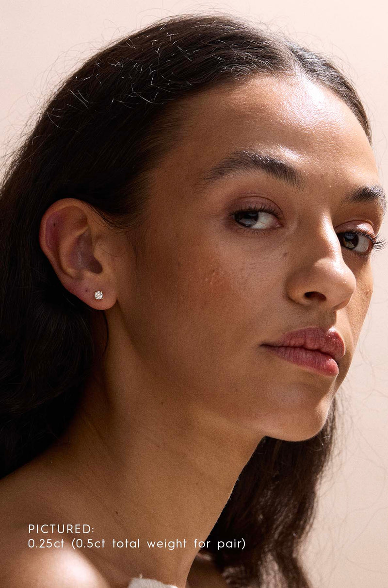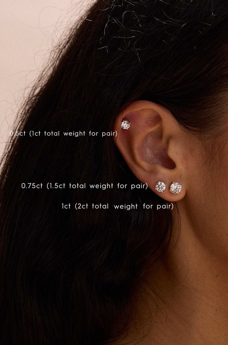 A classic that no ear should be without; meet our Milestone Diamond Stud Earrings. These Lab Grown Brilliant Round Diamonds are of the finest quality with a D/E colour and a VS2 plus quality and are set in Solid 18ct Gold in the colour of your choice.