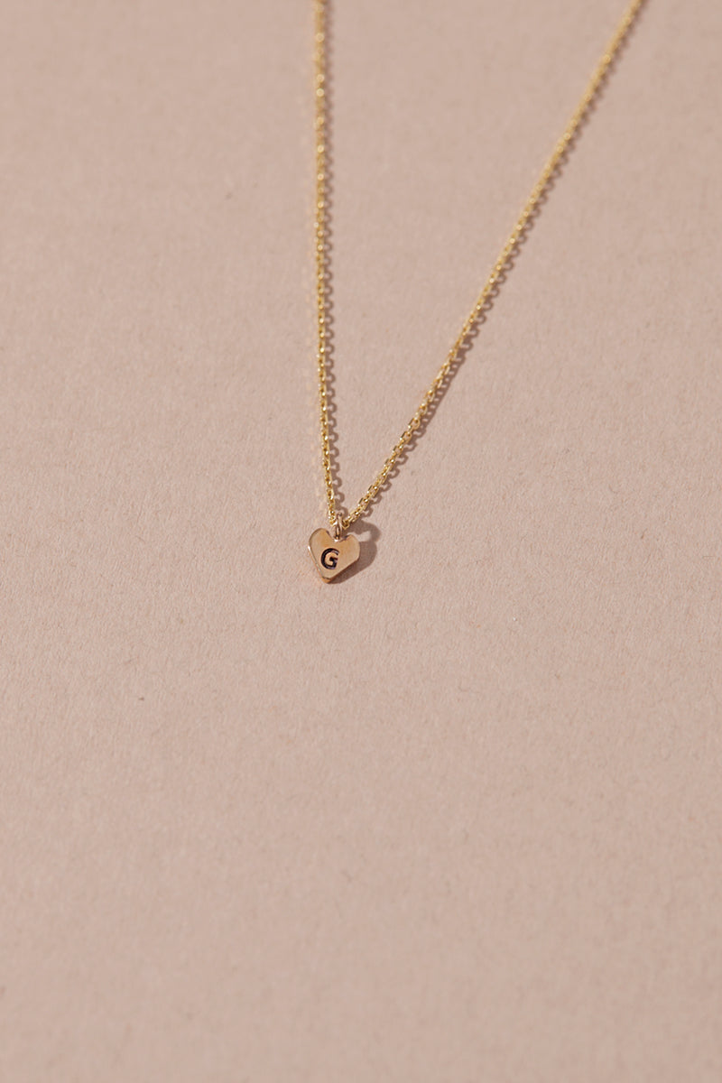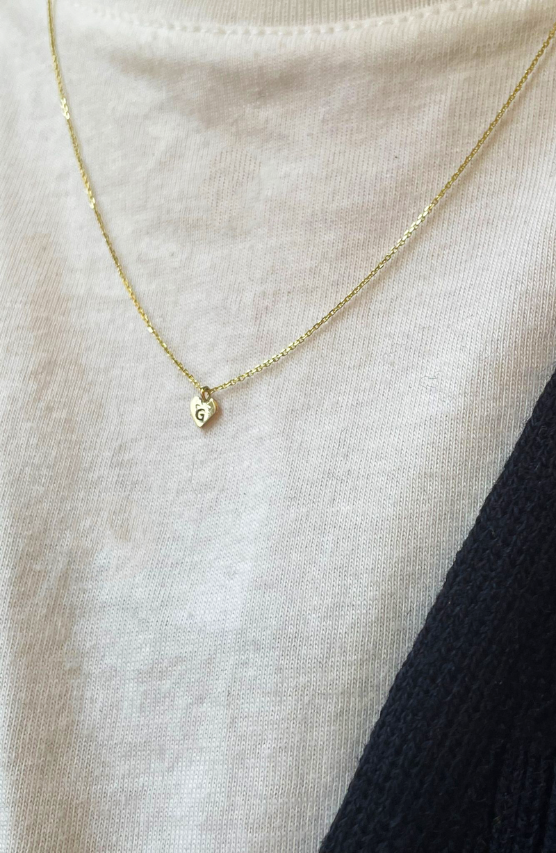 The heart is 4.5mm high with a width of 4.2mm and is engraved with a letter or motif at a dainty 1.7mm in height. Please note the letters will be made from the same gold type as the chain selection.